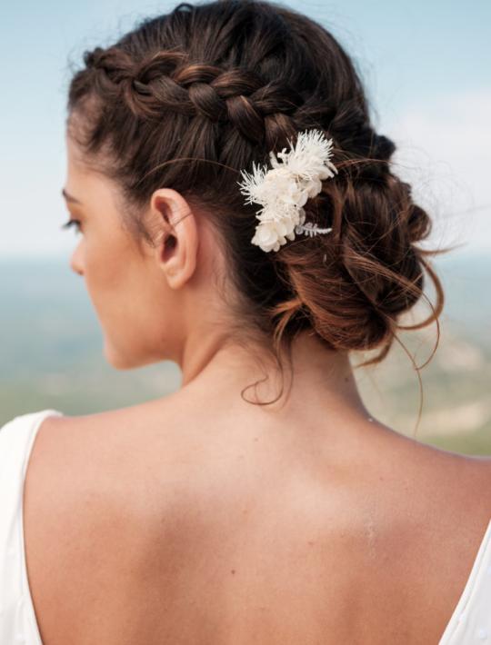 Der geflochtene Dutt ist ideal für alle, die sich eine romantische, raffinierte und detailreiche Frisur wünschen. Durch die Kombination der Kunst des Flechtens mit der Eleganz des Dutts entsteht ein strukturierter und künstlerischer Look, der perfekt ist, um ein festliches Outfit oder einen besonderen Anlass zu unterstreichen.