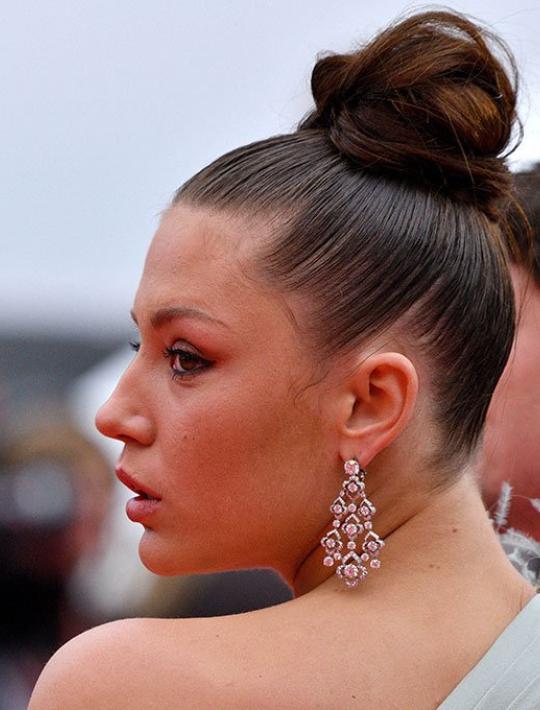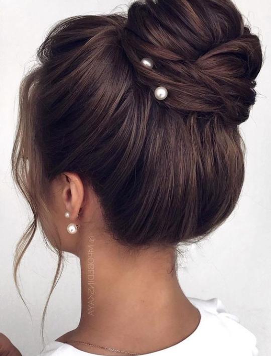 Le Chignon haut sophistiqué est idéal pour celles qui souhaitent une allure royale, audacieuse et résolument haute couture. Positionnée au sommet de la tête, cette coiffure allonge la silhouette et dégage le port de tête avec une élégance absolue, mettant instantanément en valeur votre maquillage et vos bijoux.